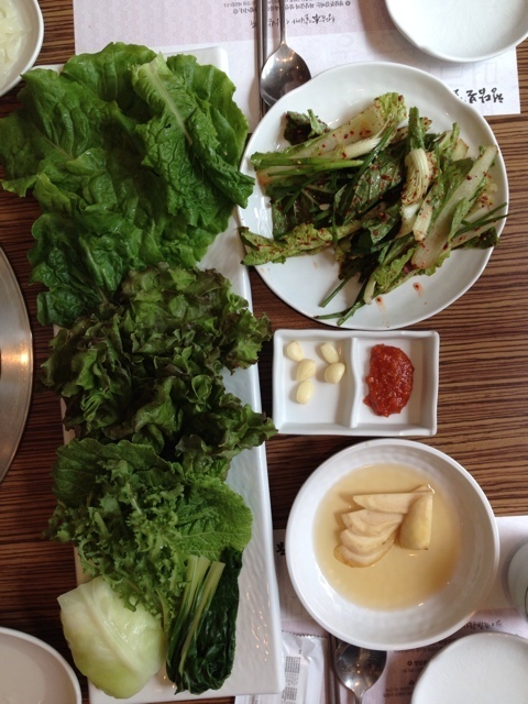 쌈채소가 정갈하게 긴 그릇에 담겨 나옵니다.