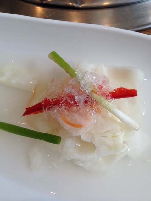 시원한 살얼음이 살짝 덮힌 양배추 백김치~ 맛있습니다.