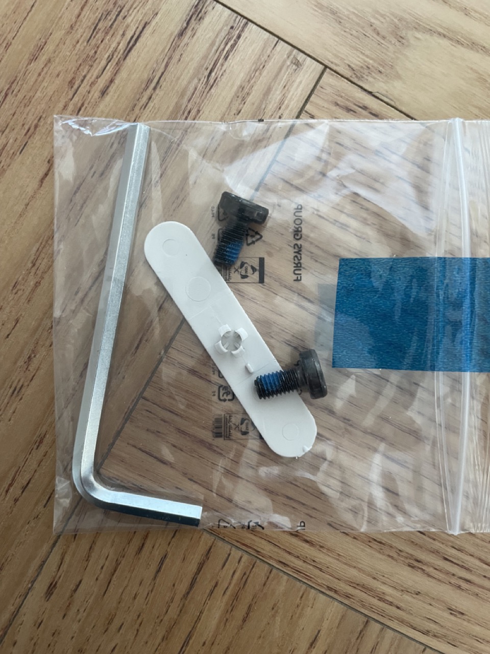 박스에는 헤드레스트, 설명서, 헤드레스트를 조립할 수 있는 나사와 육각렌치가 있습니다.