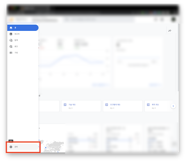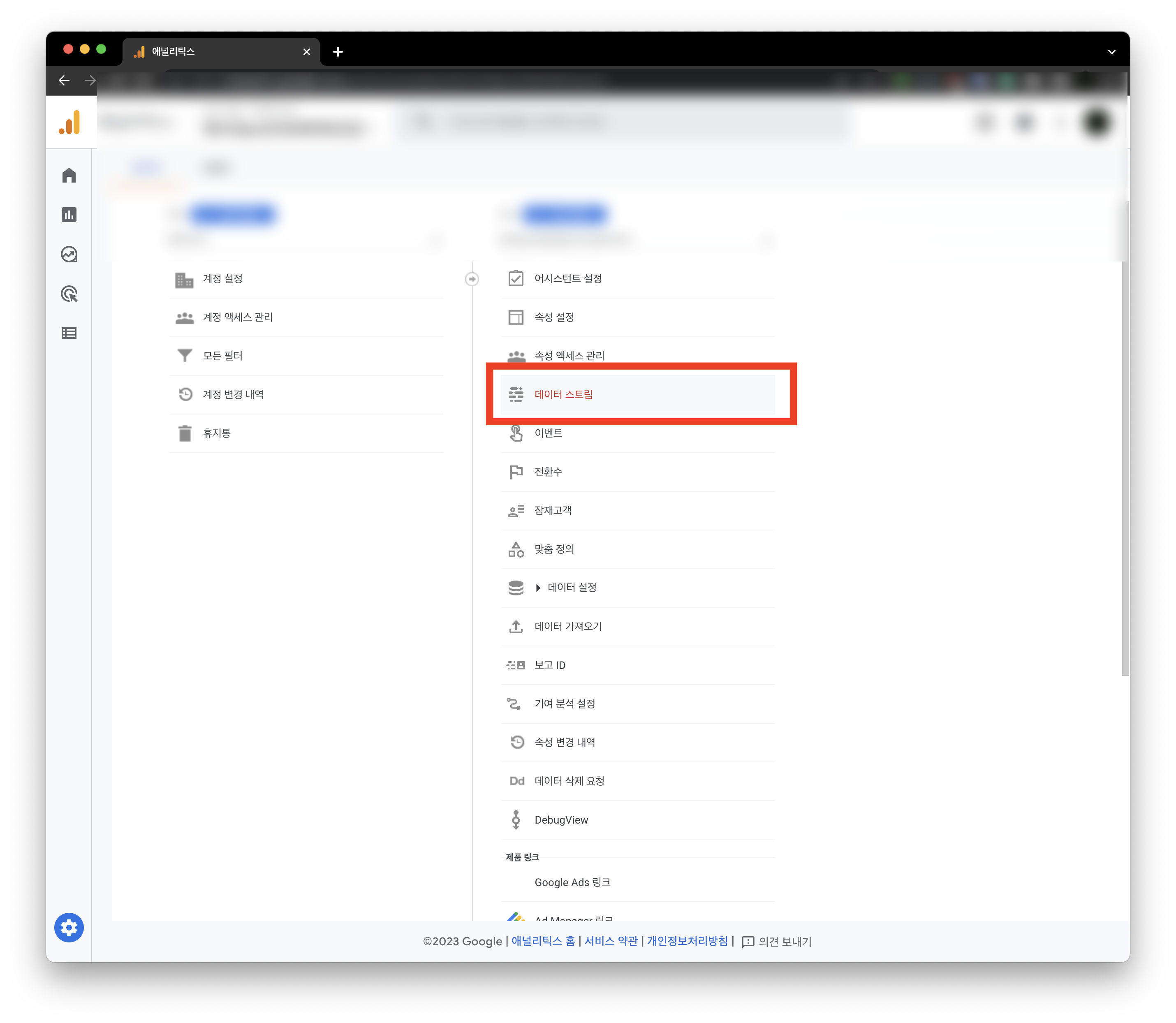 동일하게 관리 메뉴를 통해, 속성 부분의 '데이터 설정' 메뉴를 찾습니다.