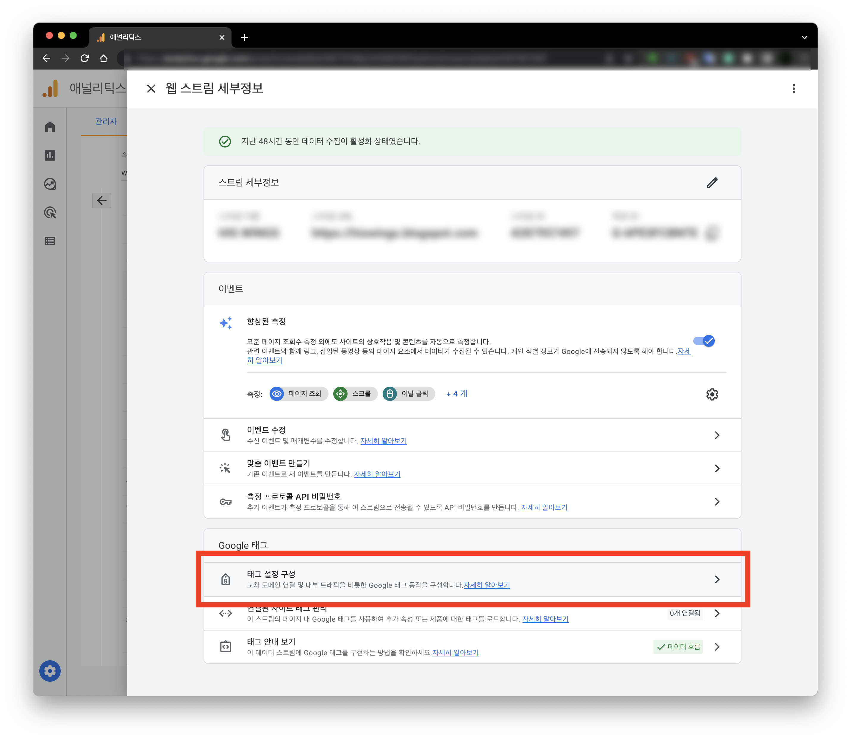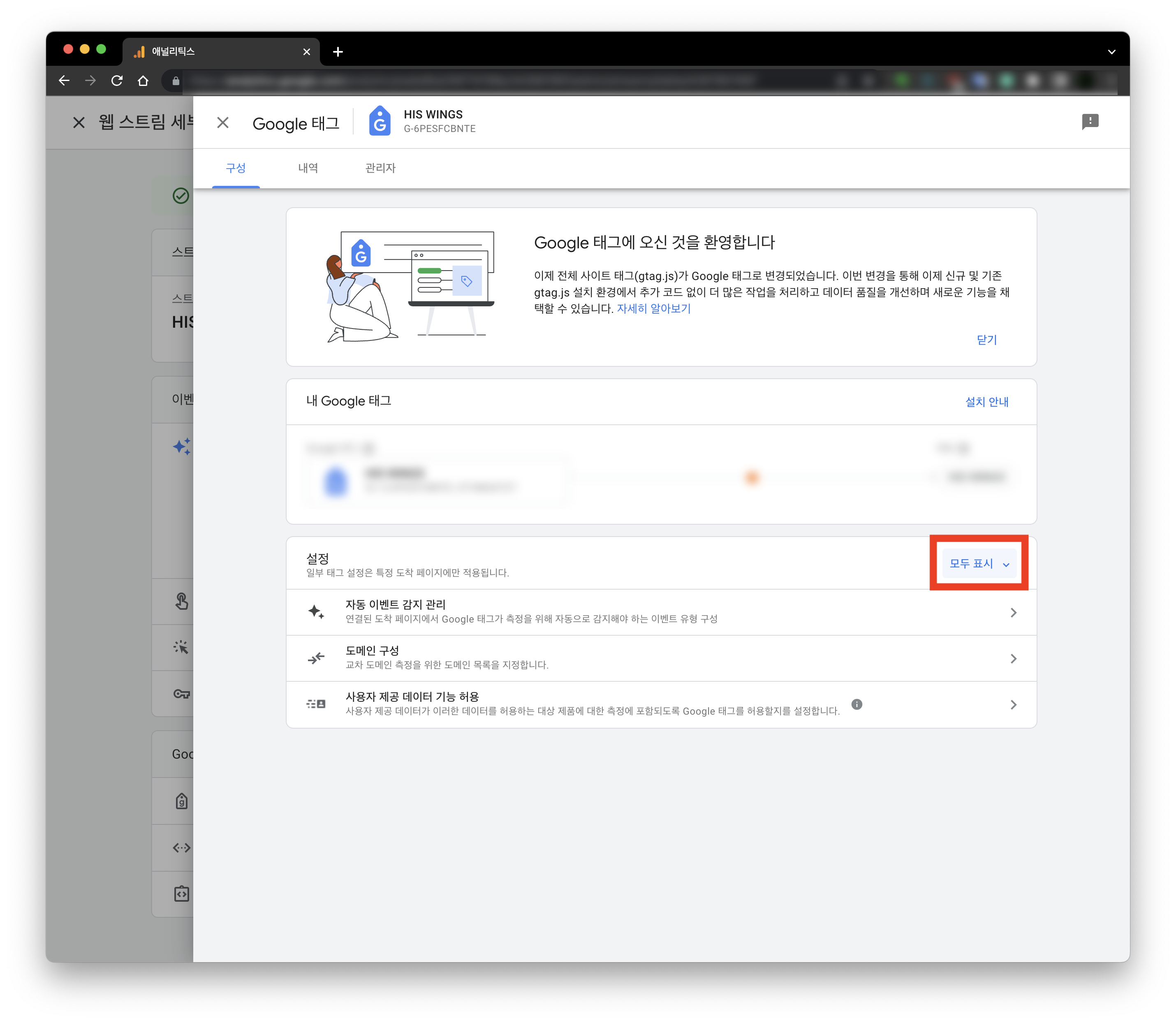 아래쪽의 태그 설정 구성을 클릭합니다.