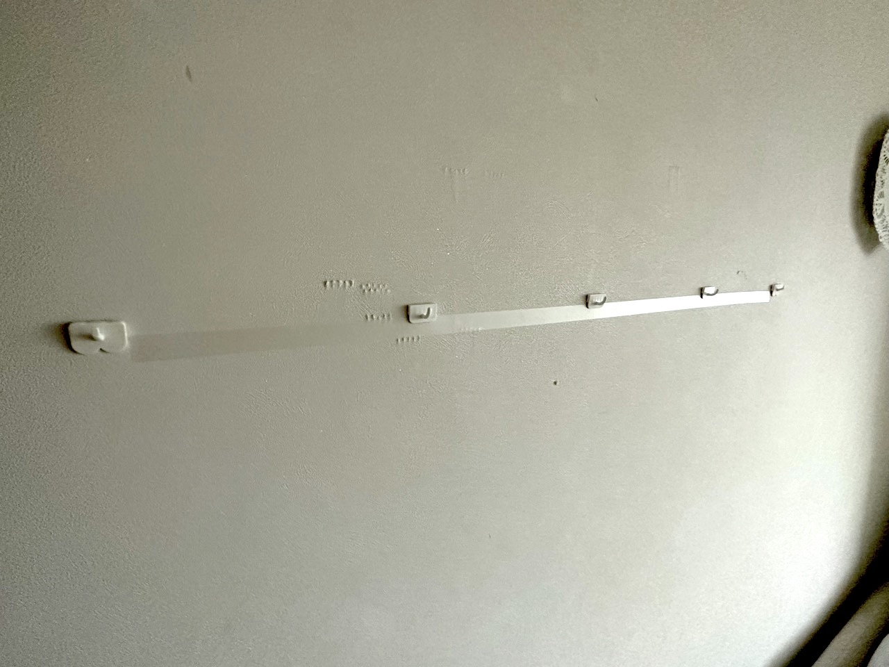 위의 이미지에서 보시는 것처럼, 스카치 벽면부착용 테이프로 벽지에 수평에 맞게 붙였고요.