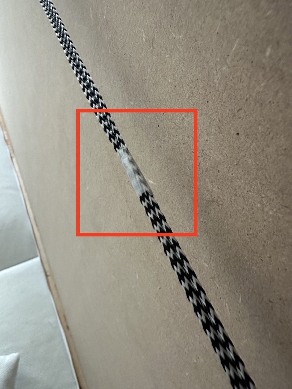 이렇게 큰 프레임의 경우는 끈이 여러 개로 구성되어 있을 수 있는데, 안 보고 걸게 되면 일부 끈만 고리에 걸리는 일이 발생할 수 있습니다.