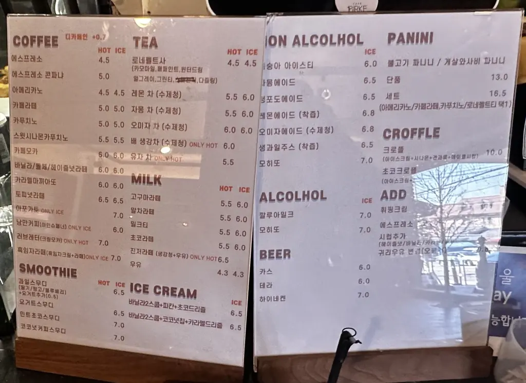 무얼 마실까 고민 (메뉴판 입니다)