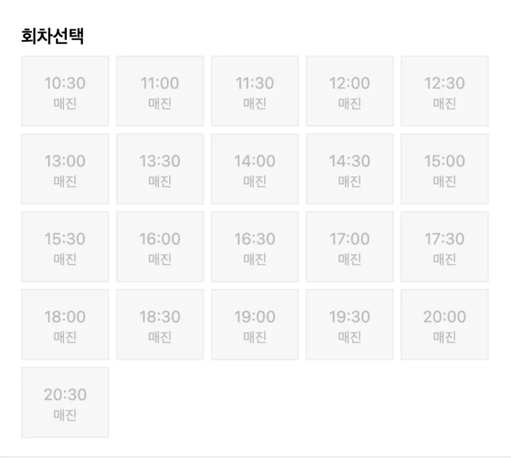 10시 30분 부터 30분 단위로, 8시 30분까지 예약을 할 수 있습니다.