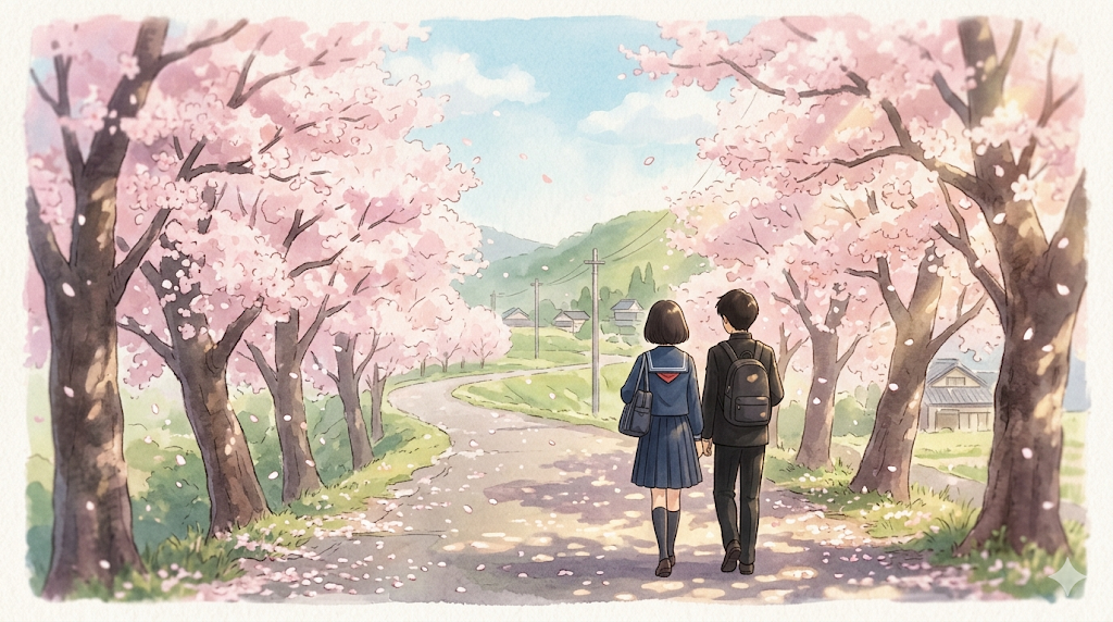 일본의 학기는 4월에 시작합니다. 벚꽃이 만개하는 시기와 정확히 겹치죠. 그래서 일본 애니메이션에서 벚꽃은 '새로운 시작'과 '지나간 시간'을 동시에 상징합니다.