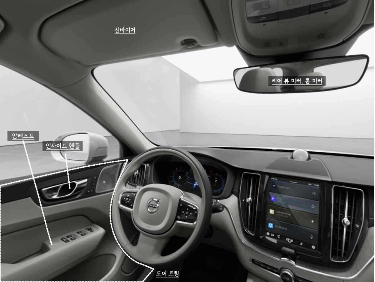 암레스트 / 인사이드 핸들 / 선바이저 / 도어트림 / 리어 뷰 미러 (룸미러)