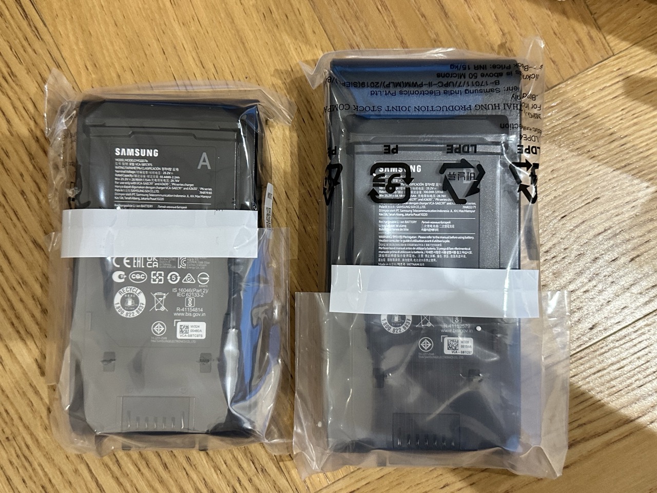 우측이 대용량 배터리입니다. 배터리 용량은 각각 2,200mAh, 3,970mAh입니다.