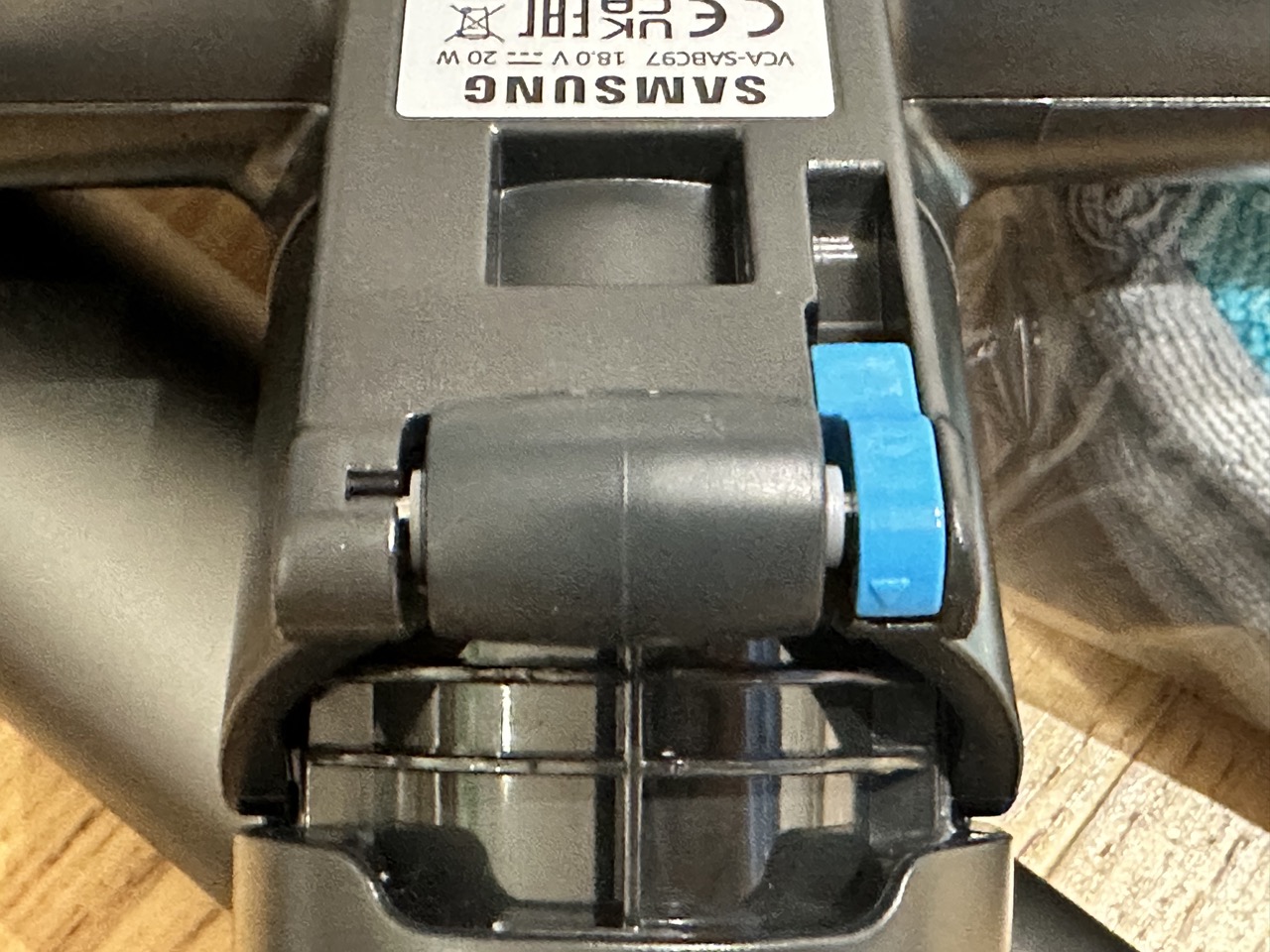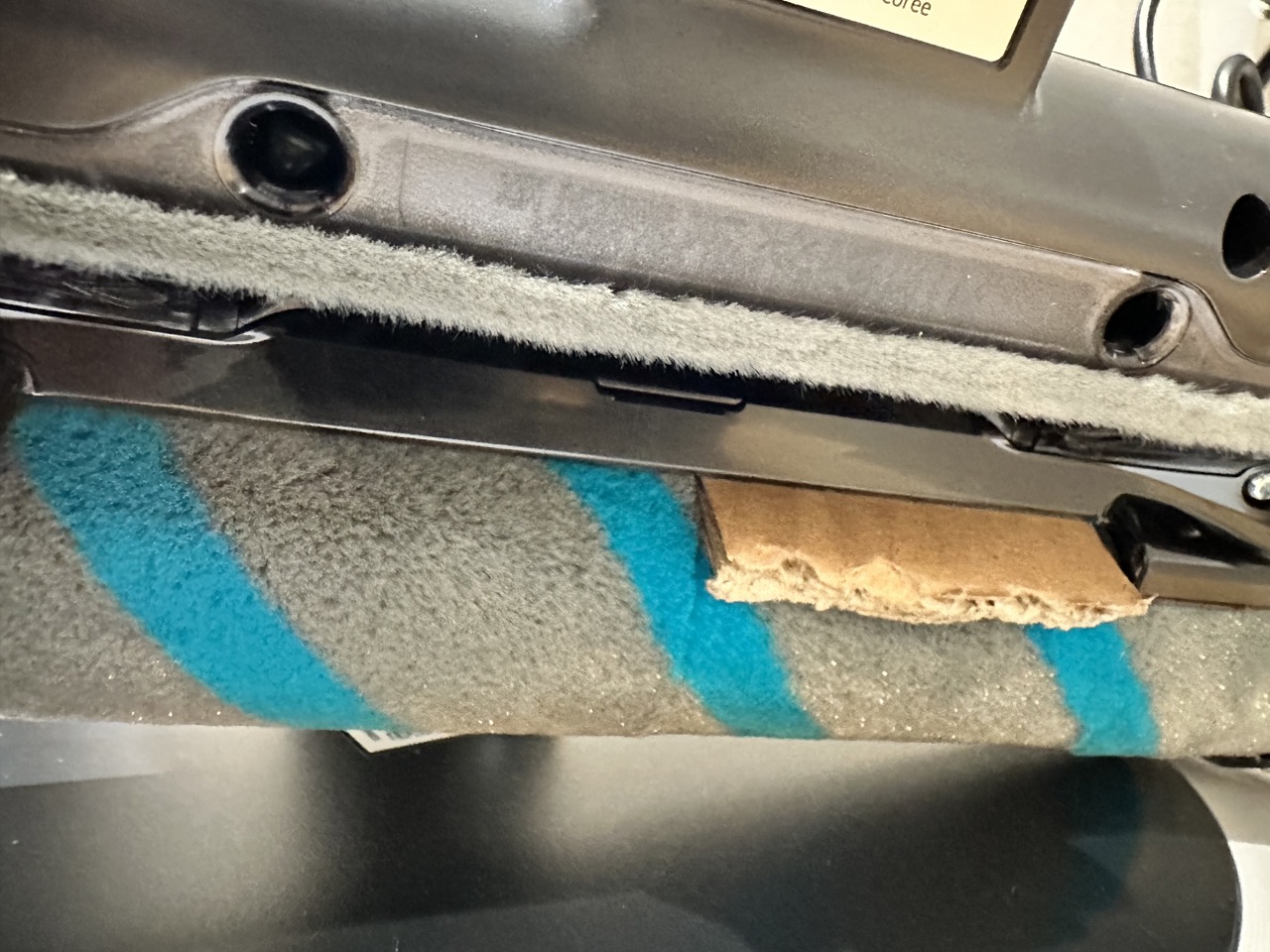브러시 아래쪽의 작은 롤러는 청소를 위해 분리가 가능하도록 되어 있습니다. (파란색 레버 사용)