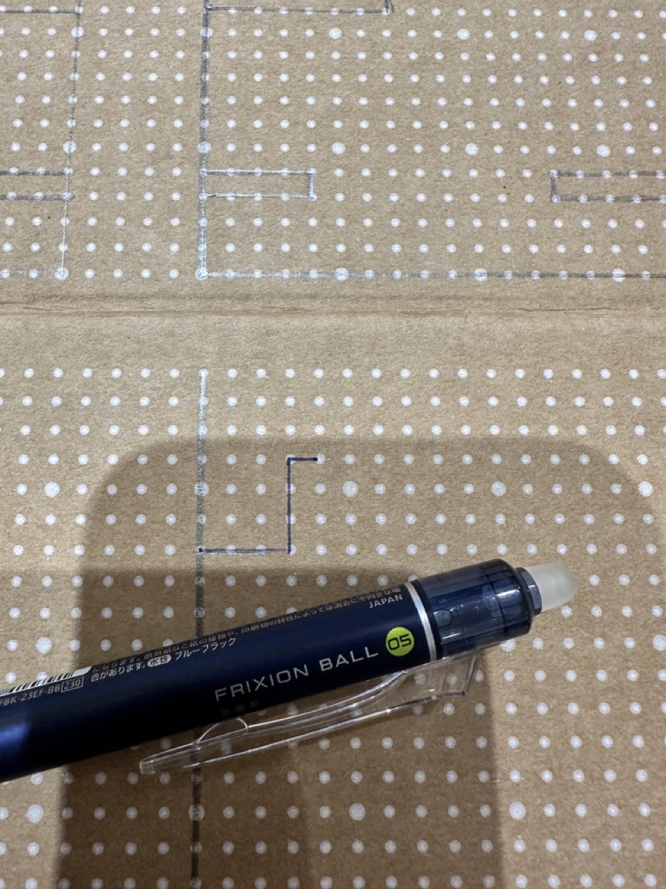 처음에는 연필로 했는데, 잘 눈에 안 띄어서, 지워지는 펜으로 그리니 선명하고 좋네요. 나중에 지우기도 쉽고요.