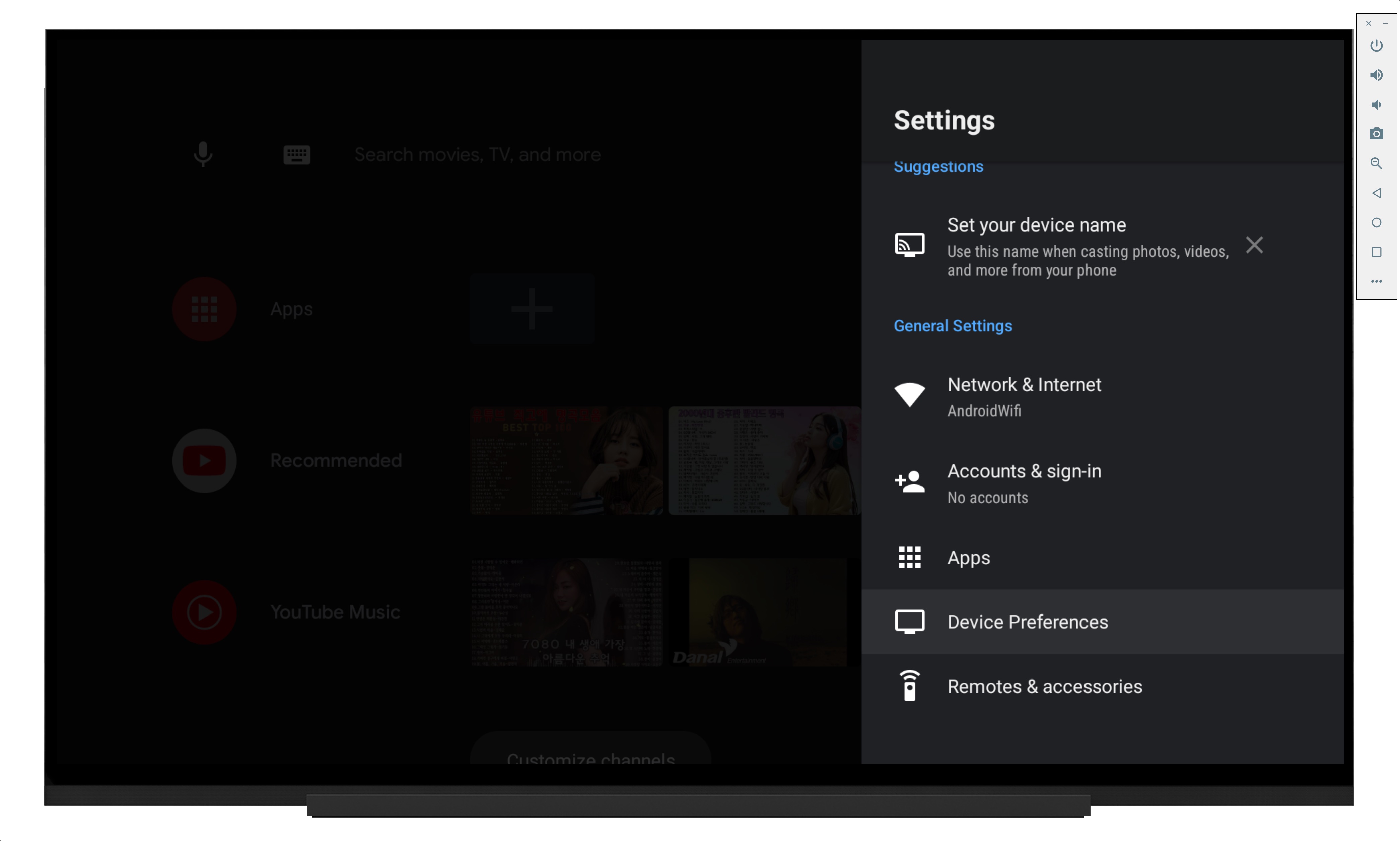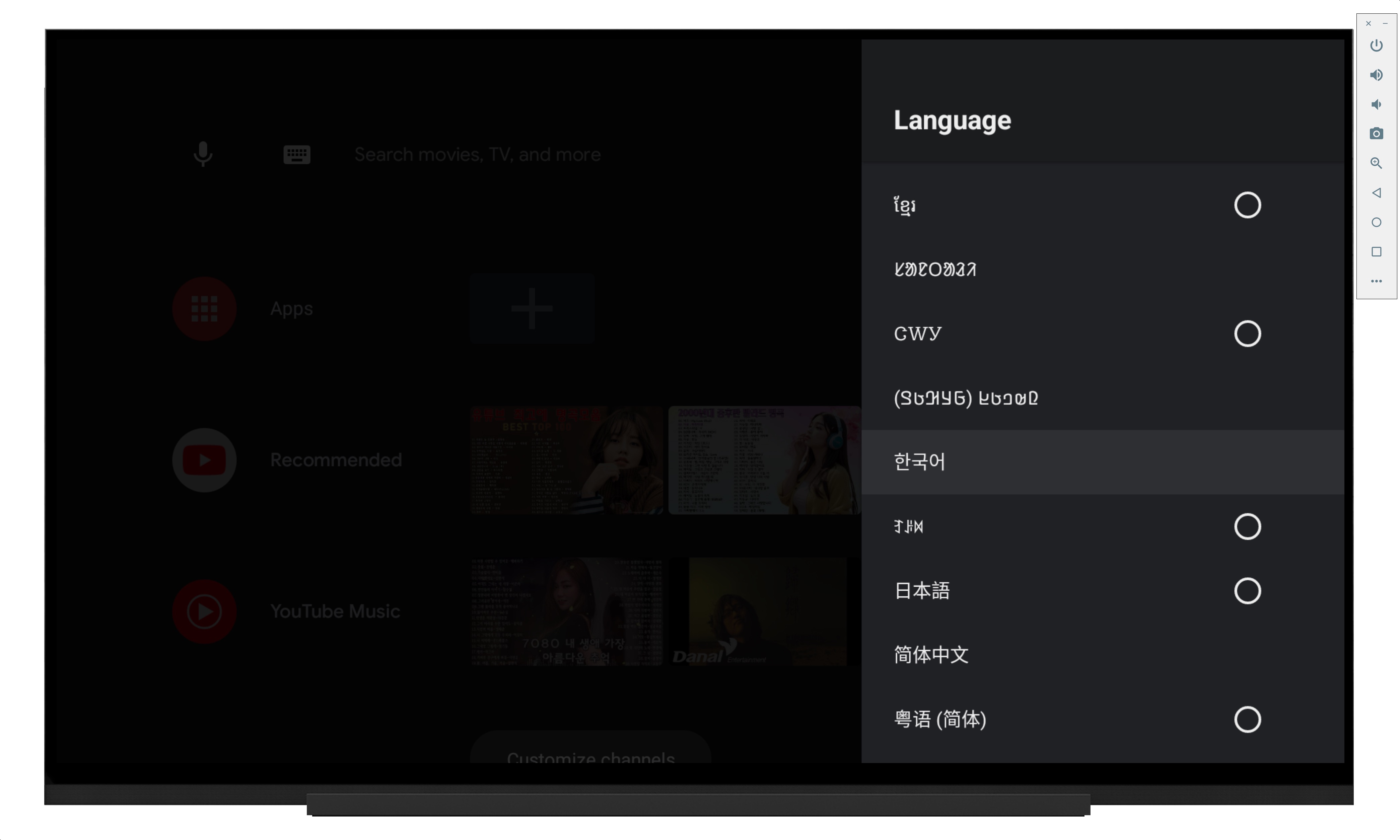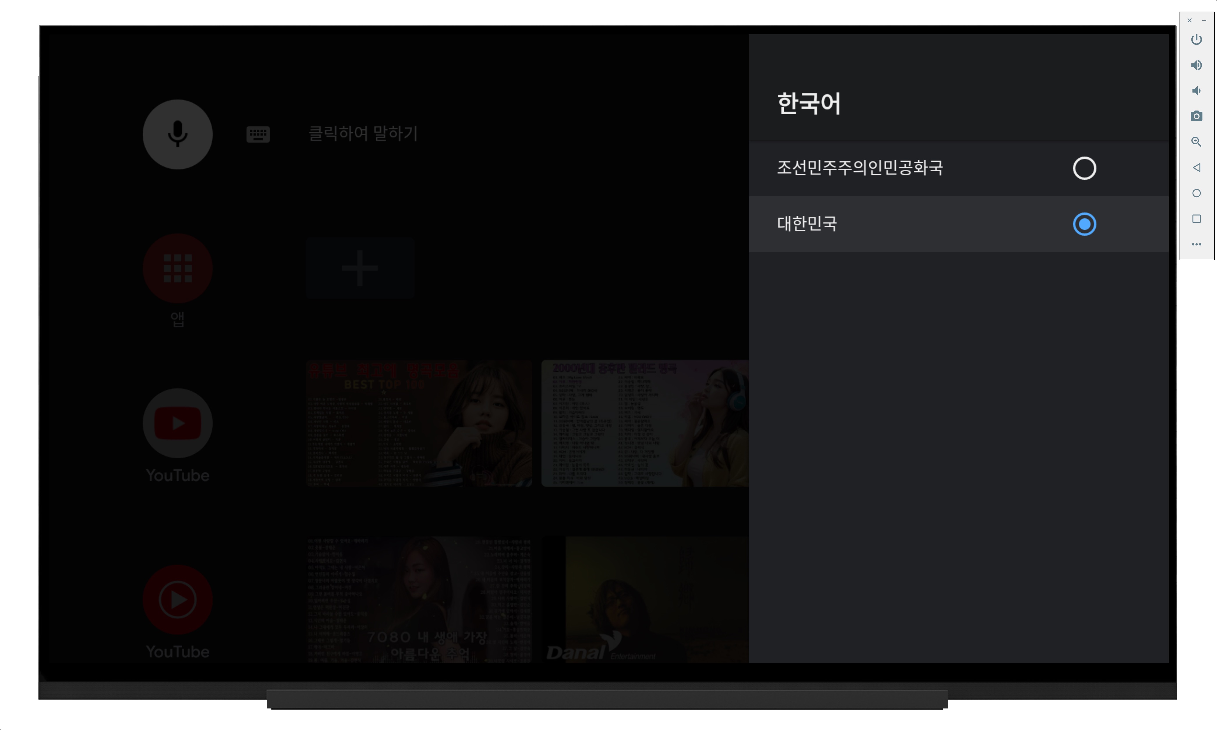 우측의 |>를 눌러서 안드로이드 TV를 실행시킵니다.