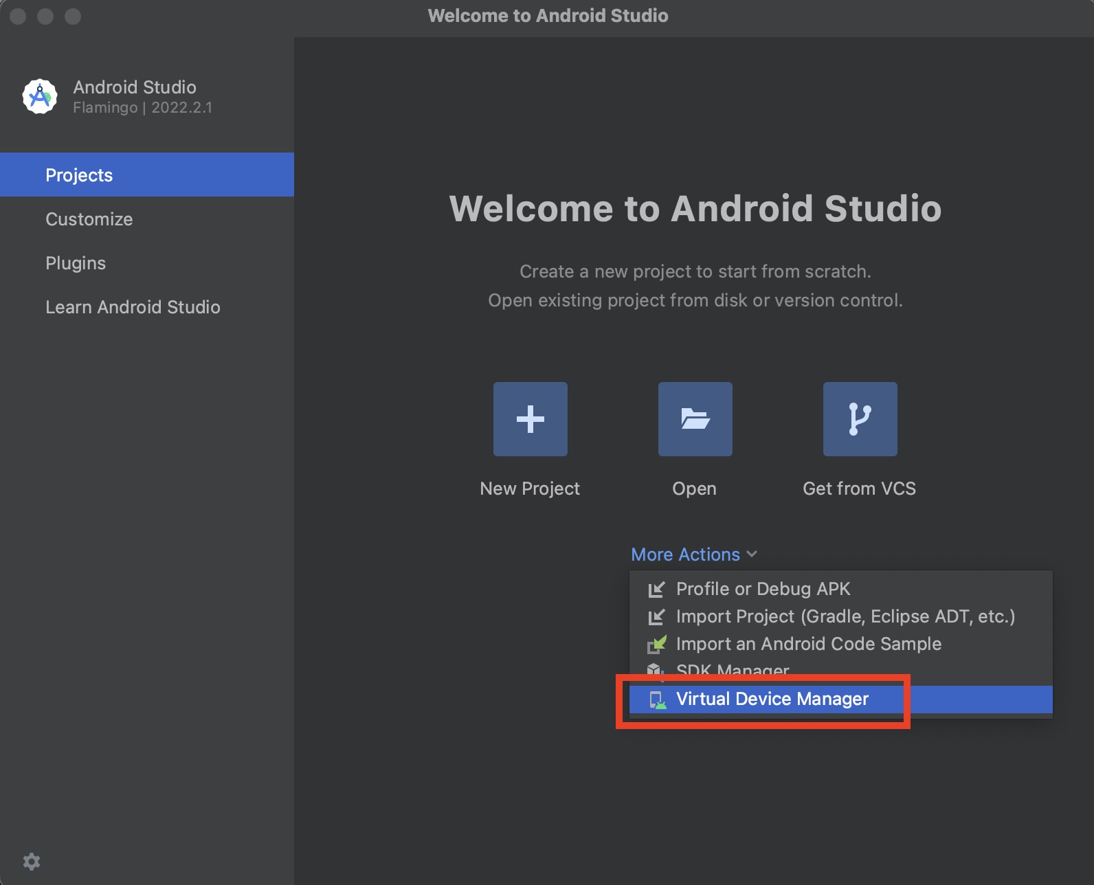 Virtual Device Manager 메뉴가 보입니다. 해당 메뉴를 선택합니다.