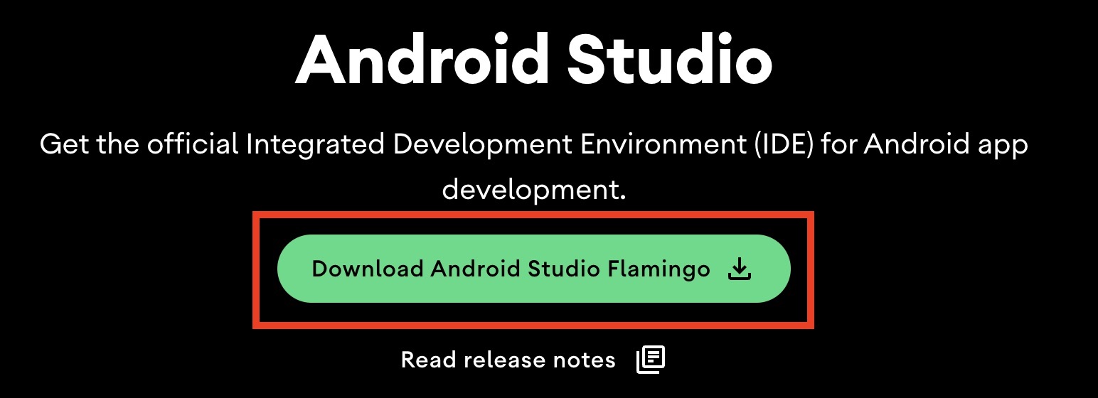 페이지 들어가자마자 보이는 Download Android Studio Flamingo를 클릭해서 다운로드합니다.