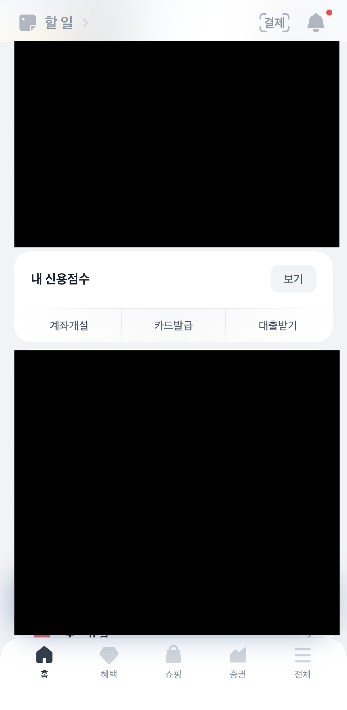 조회 방법: 토스 앱 실행 → 홈 화면의 '신용점수 보기' → KCB·NICE 점수 동시 확인