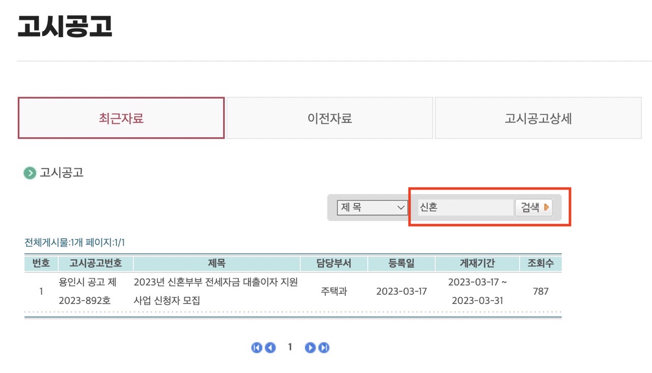 검색에 '신혼'이라고 입력하시면 아래 이미지처럼 나오는데, 해당 게시글에 들어가시면 hwp 파일을 다운로드하실 수 있습니다.