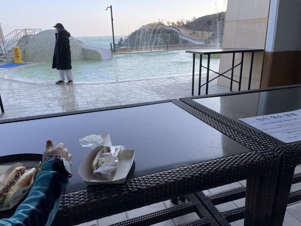 이후, 그래도 열풍기가 있는 카바나에서 조금 따뜻하게 간식을 먹었습니다.