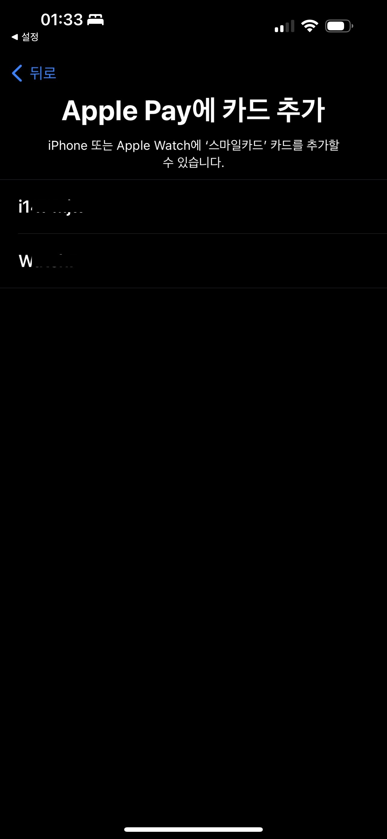 애플 페이 등록 설정화면