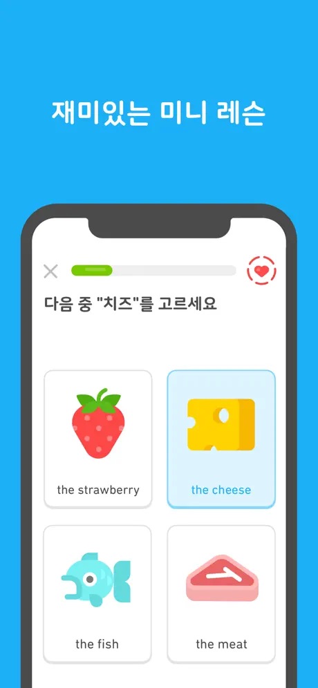 이 앱은 아마도 듀오링고를 벤치마킹한 후, 한국어판으로 개선하여 선보인 것 같습니다.