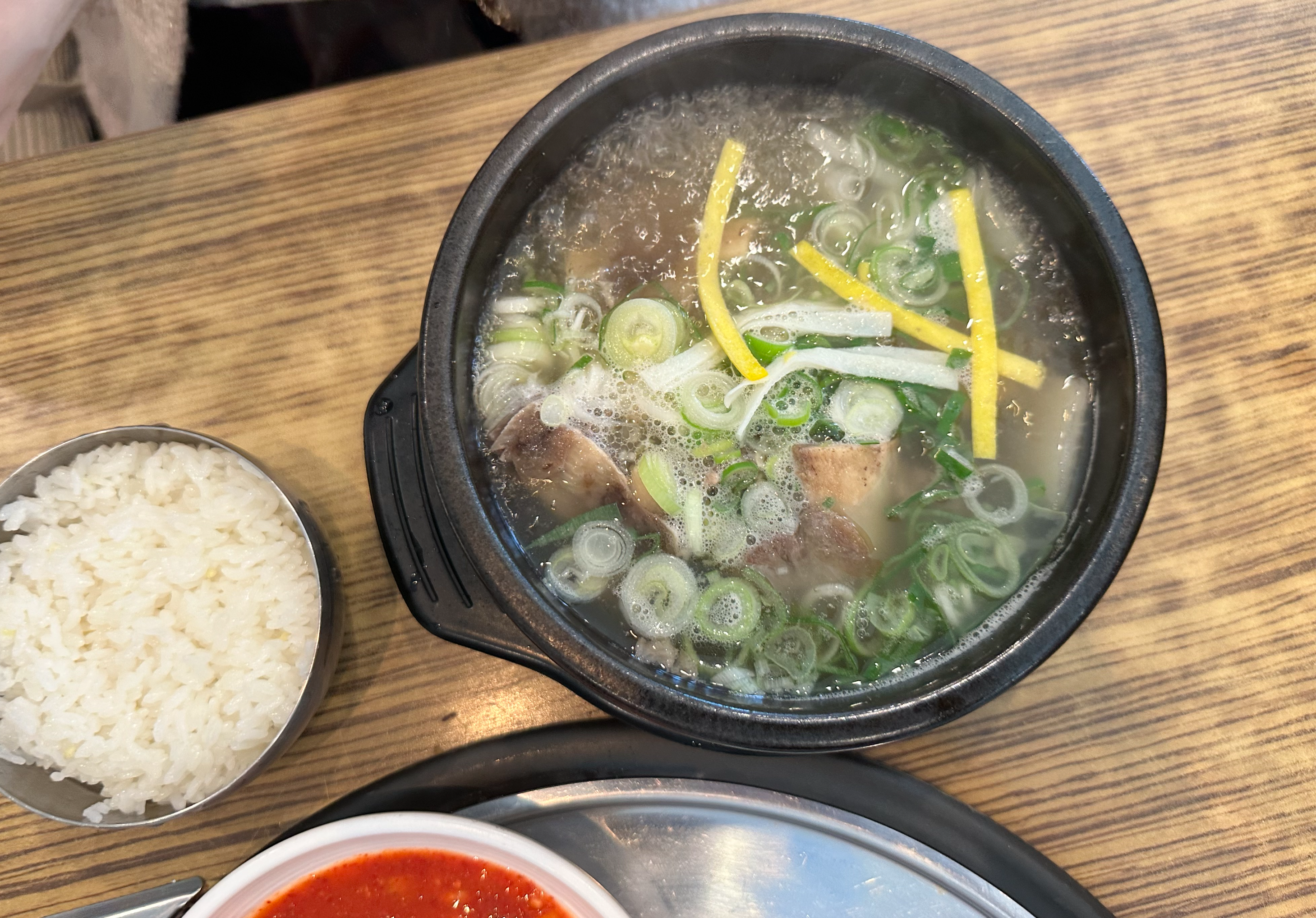 국물은 잡내 없이 맑고 깊으며, 고기는 뼈째 푹 고아져 있어 숟가락만으로도 발라질 정도.