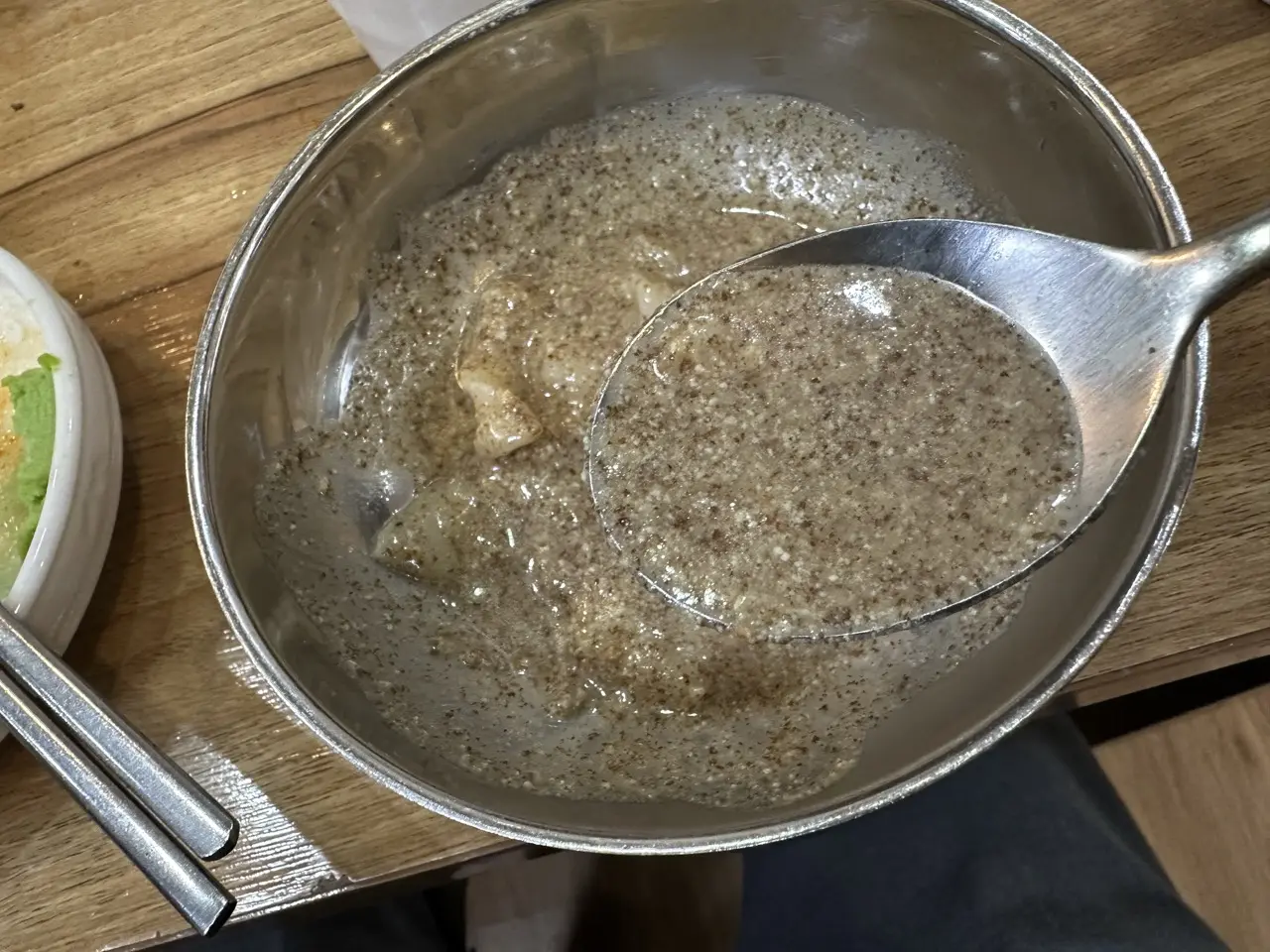 마지막에 식사가 끝날 무렵, 들깨가 가득 들어간 들깨 수제비를 줍니다.