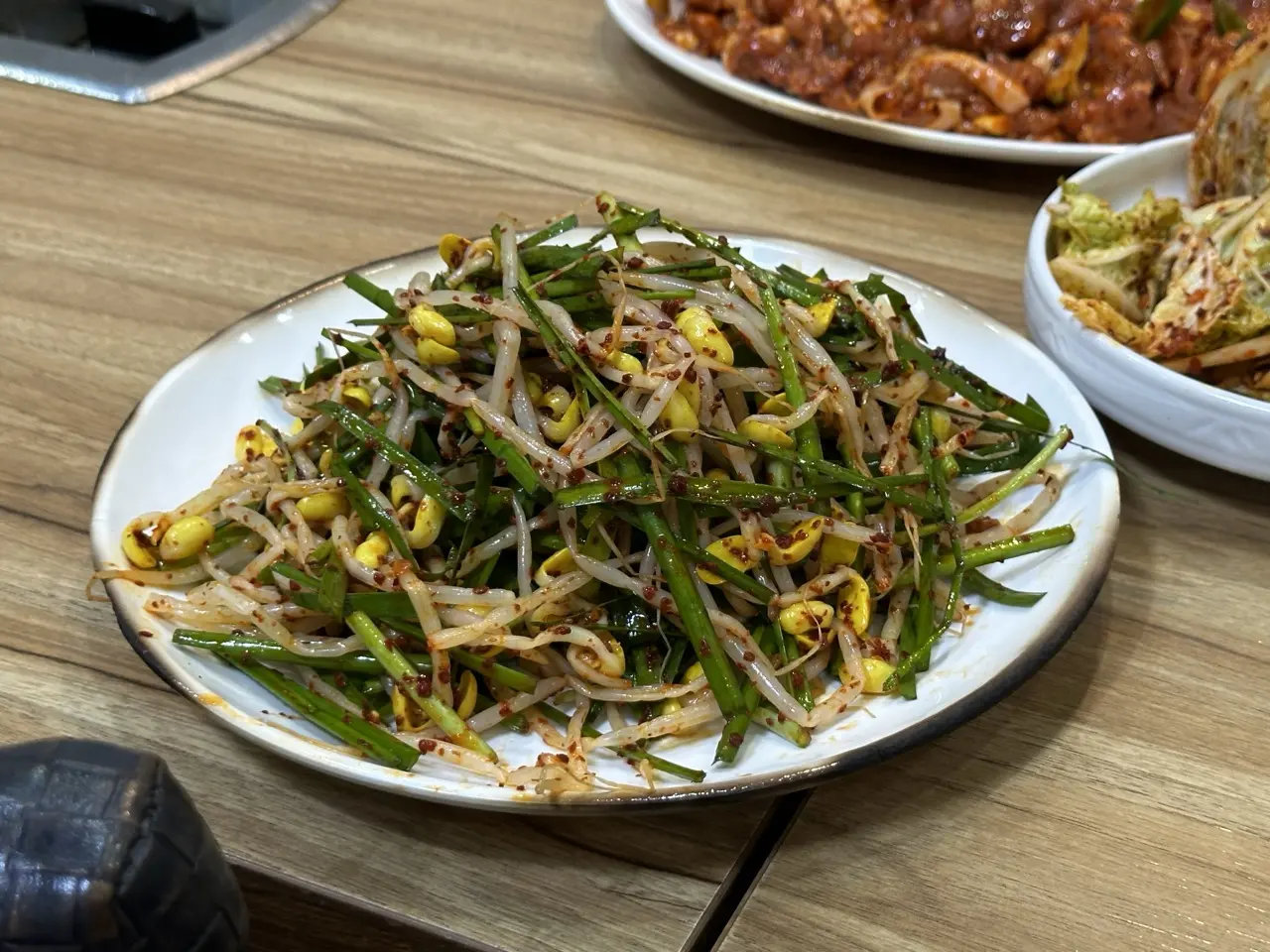 부추 콩나물 무침이 나옵니다.