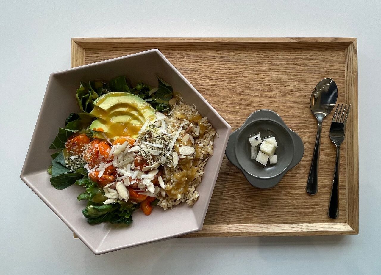 오늘 시킨 메뉴는 아보카도,새우가 들어간 샐러드.