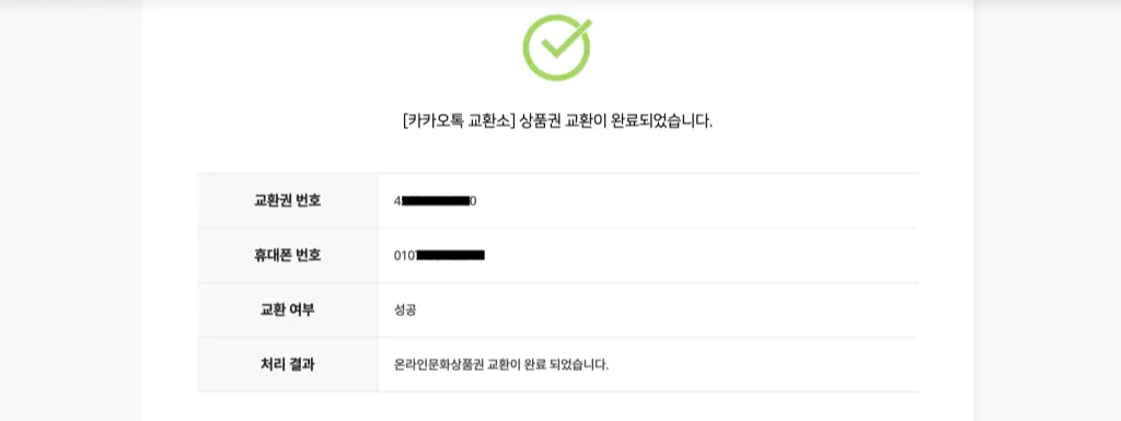 1. 카카오톡으로 문화상품권 '교환권'을 수령함