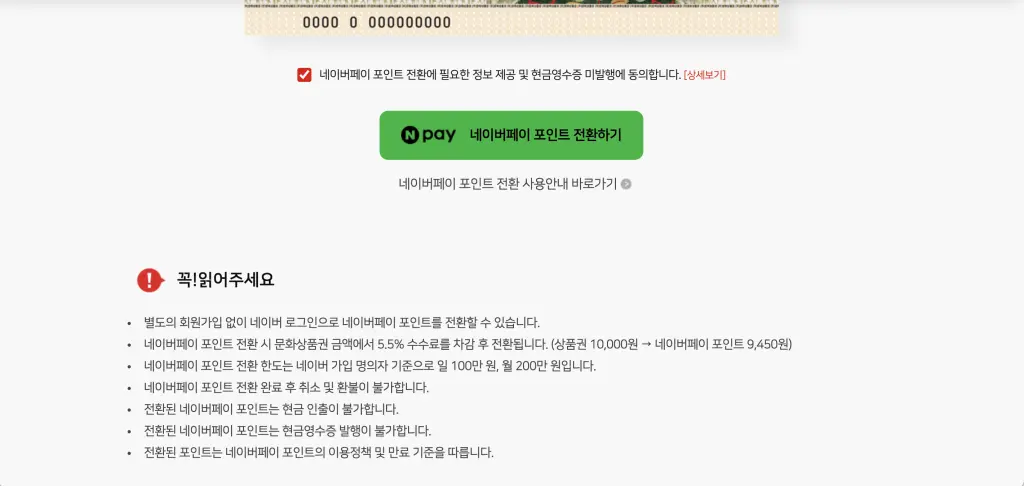 3. 컬쳐랜드 문화상품권 홈페이지에서 네이버페이포인트로 교환함