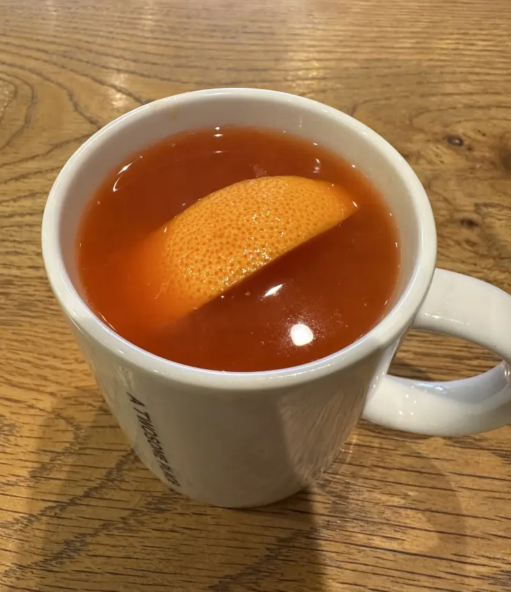 오렌지 둥둥. 자몽과 오렌지의 새콤 달콤맛 진하게 느낄 수 있는 오렌지 자몽티였습니다.