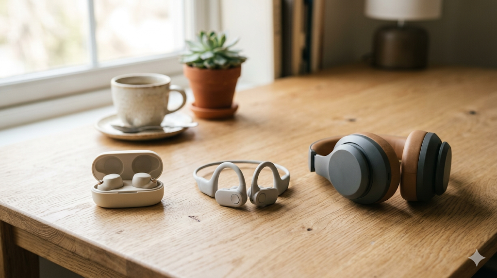 커널형의 밀폐감이 싫어서 오픈형으로 바꿨더니 귓바퀴가 아프고, 그렇다고 헤드폰은 들고 다니기 불편하고. 이런 고민이 계속되신다면, 실내에서는 헤드폰, 이동 중에는 귀 올림형 오픈형, 운동할 때는 골전도 — 이렇게 상황별로 나눠서 쓰는 것이 가장 현실적인 방법입니다.