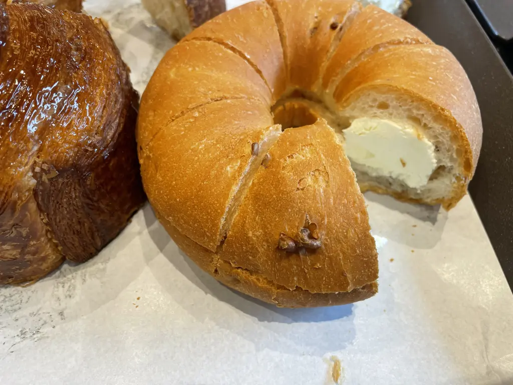 어니언 베이글에는 양파가 풍성하게 들어 있어서 이 또한 맛있었습니다. 재료를 아끼지 않는 것도 성공에 한 몫 하지 않았나 합니다.