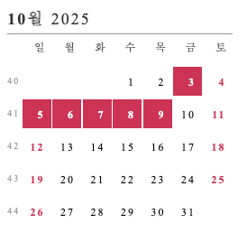 - 10월 5일(일)~8일(수) (추석+대체공휴일)