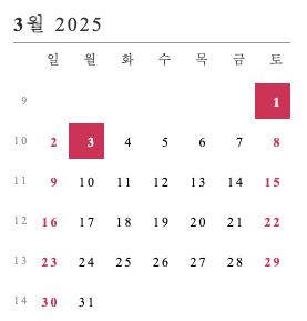- 3월 3일(월) (삼일절 대체 공휴일)