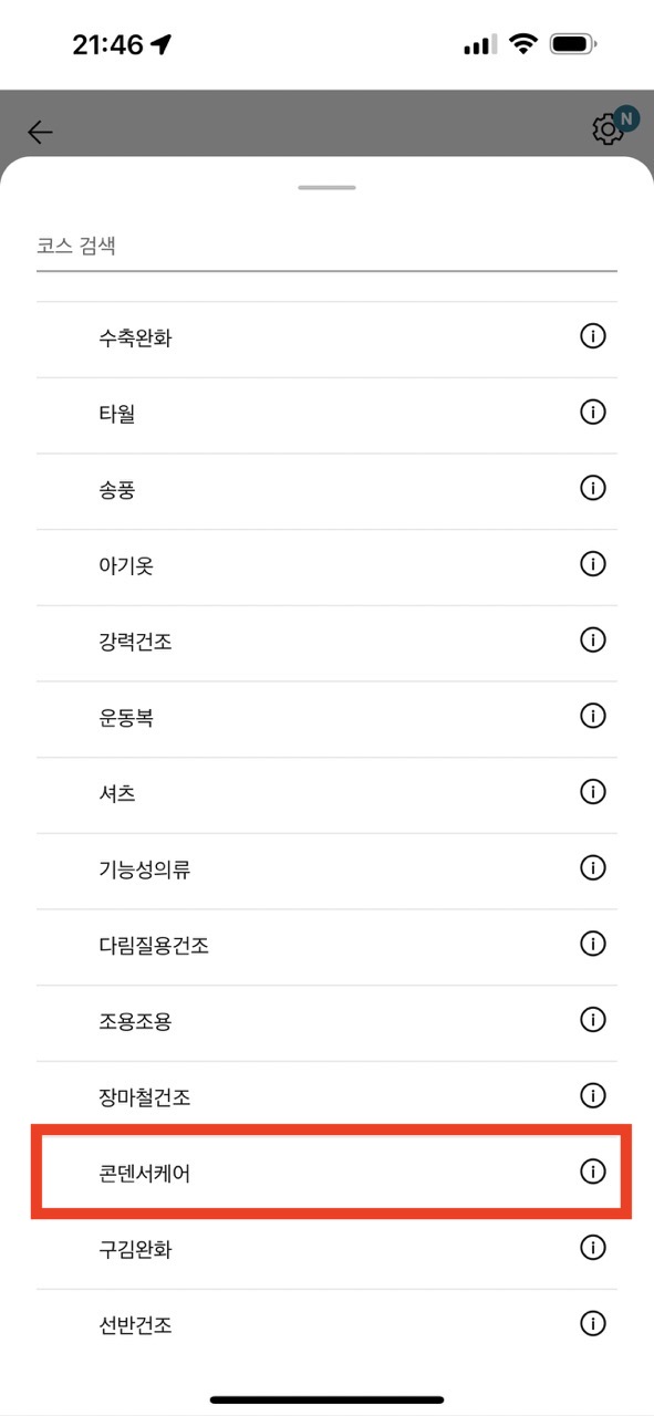 그런데, 다이얼을 돌려봐서 코스 중 콘덴서케어는 보이지 않습니다.